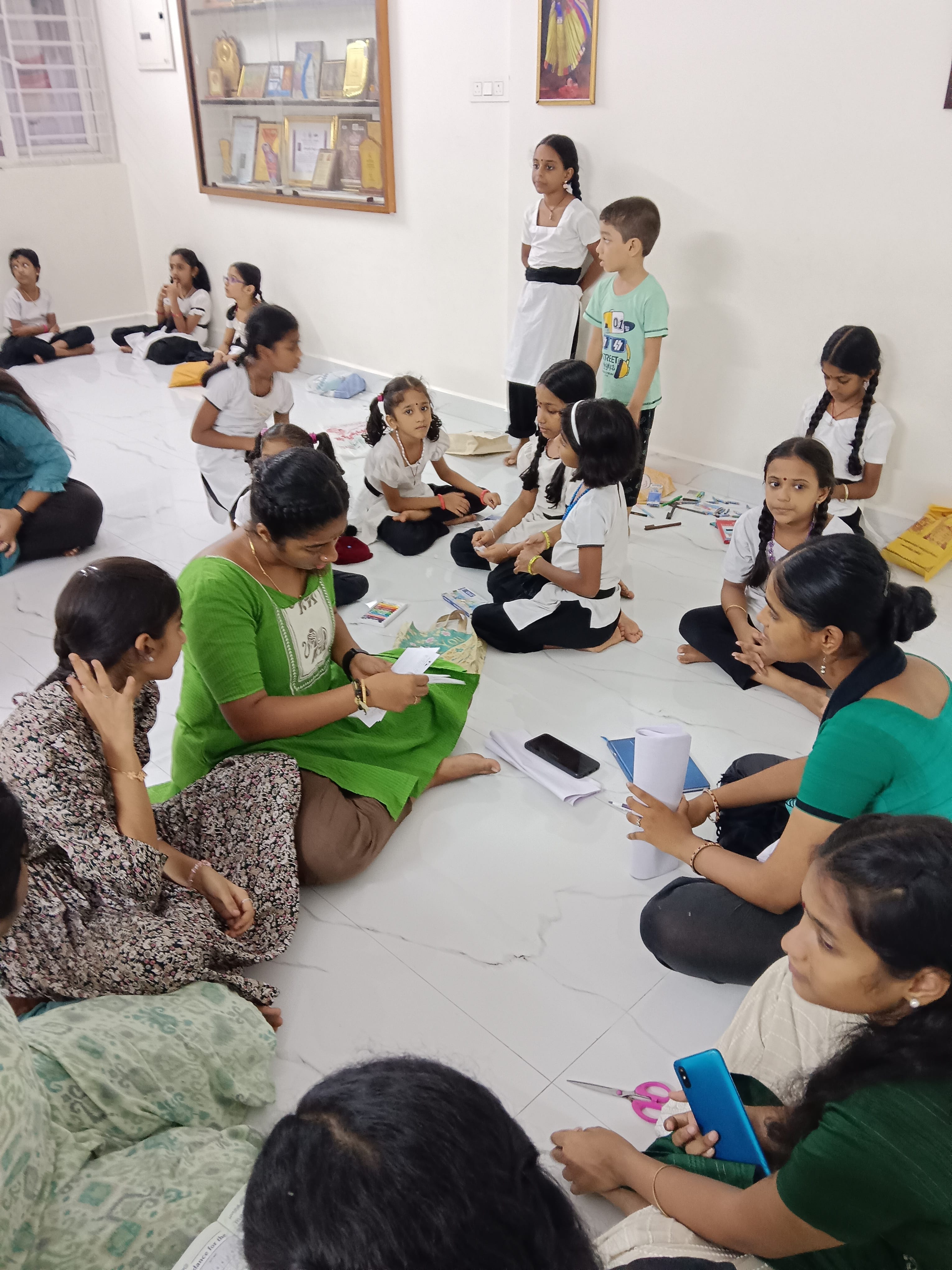 Vaidehi Harish along with a group of volunteers conduct value education classes at the corporation schools in the city. Value education program through the Art form is the major initiative of the institution that has received a great response from the children from downtrodden community.